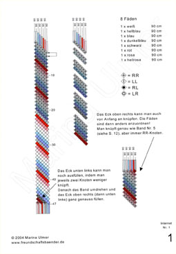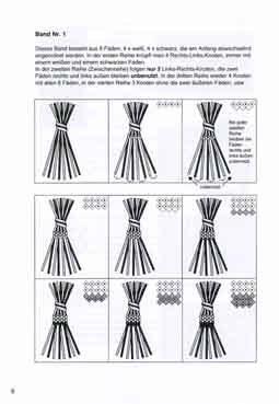 Das erste Buch ist für Einsteiger. Es enthält die Knüpfvorlagen für 30 Bänder,